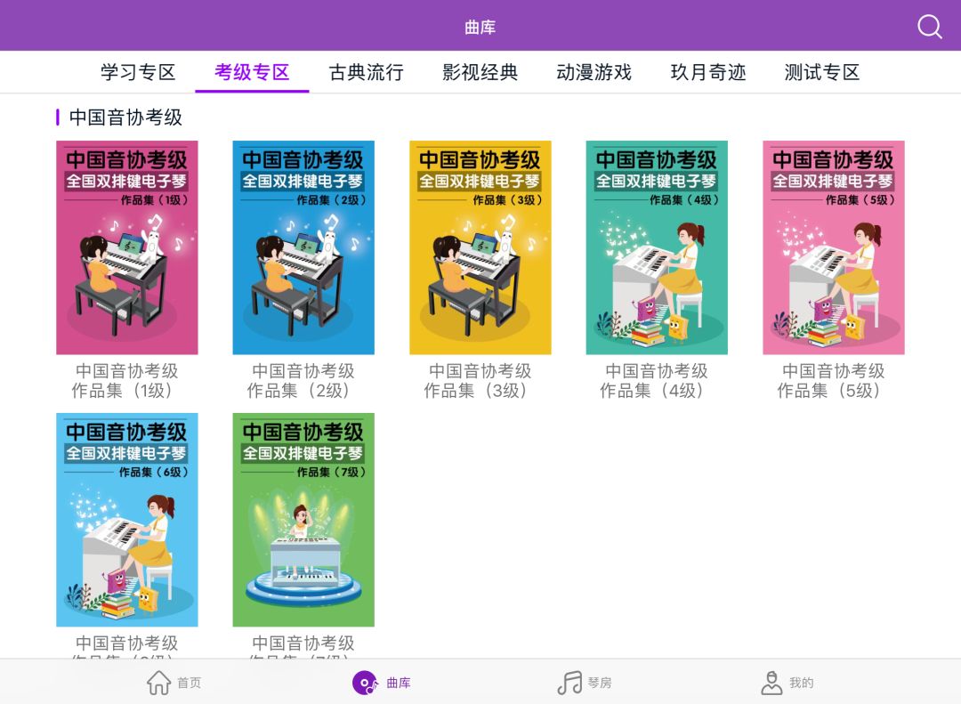 由玖月教育研发的“玖月琴房”在不脱离音乐教育本质的前提下,官方课程中除了系统完备的考级教材外,还有海量类别丰富的乐曲,孩子们可以享受古典音乐的经典外、还能感受流行音乐的魅力。