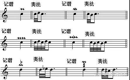 在音符的时值内,用主音和比主音高一度或半度的音,以非常快的速度交替反复地弹奏。